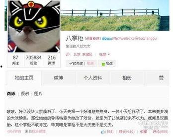首先,得先来了解一下这位八掌柜。据说是娱乐圈的一位资深人士,对圈内的事情了如指掌。这次他突然跳出来爆料,让整个娱乐圈都沸腾了。